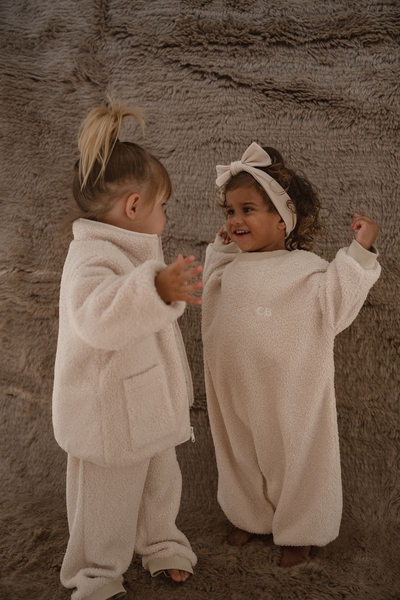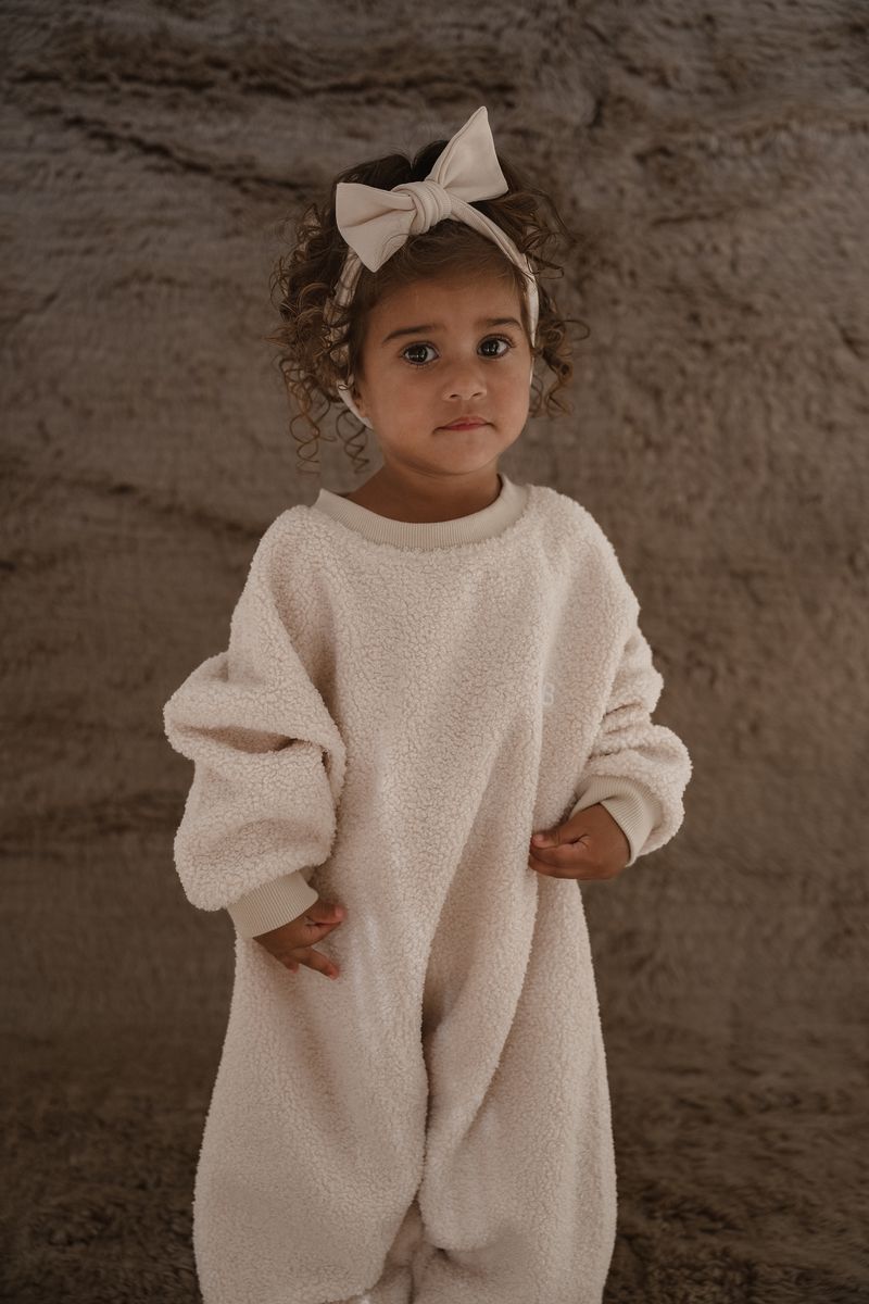 Our textured teddy lounge suits are made to keep your little one warm this winter. Made stretchy for comfortability, style and have an oversized fit. With snap button crotch detailing for changing your little one on the go.